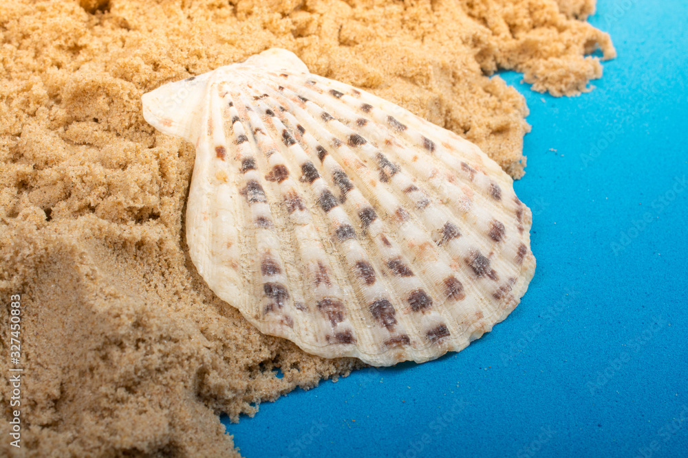 Mother of pearl shell scallop. Mollusk seashell texture.
