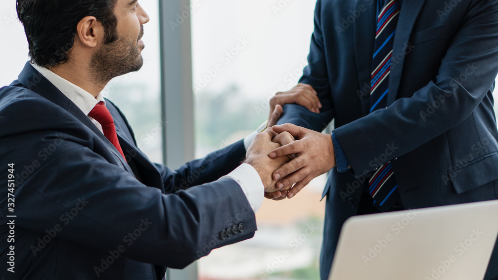 business background of businessman having handshaking after finish business deal