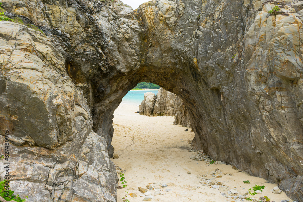 natural stone arch on Tokashiki island, Okinawa, Japan.