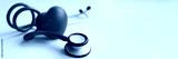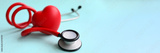Red stethoscope with heart on blue modern background. Medical insurance concept