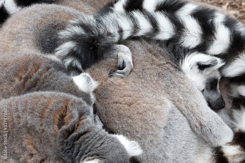 Sleeping Ring-tailed Lemurs.