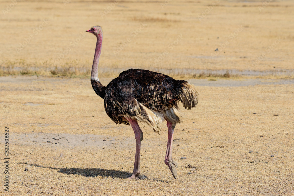 Running male common ostrich (Struthio camelus) in the Ngorongoro crater