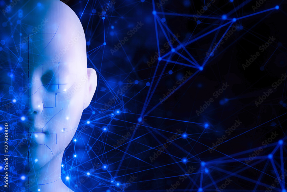 ai technology, abstract futuristic universe cyber network server online, background illustration 3d rendering, robotic micorchip system, plexus and science