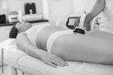Young woman getting full body cosmetology treatment by professional cosmetologist using rf-lifting machine