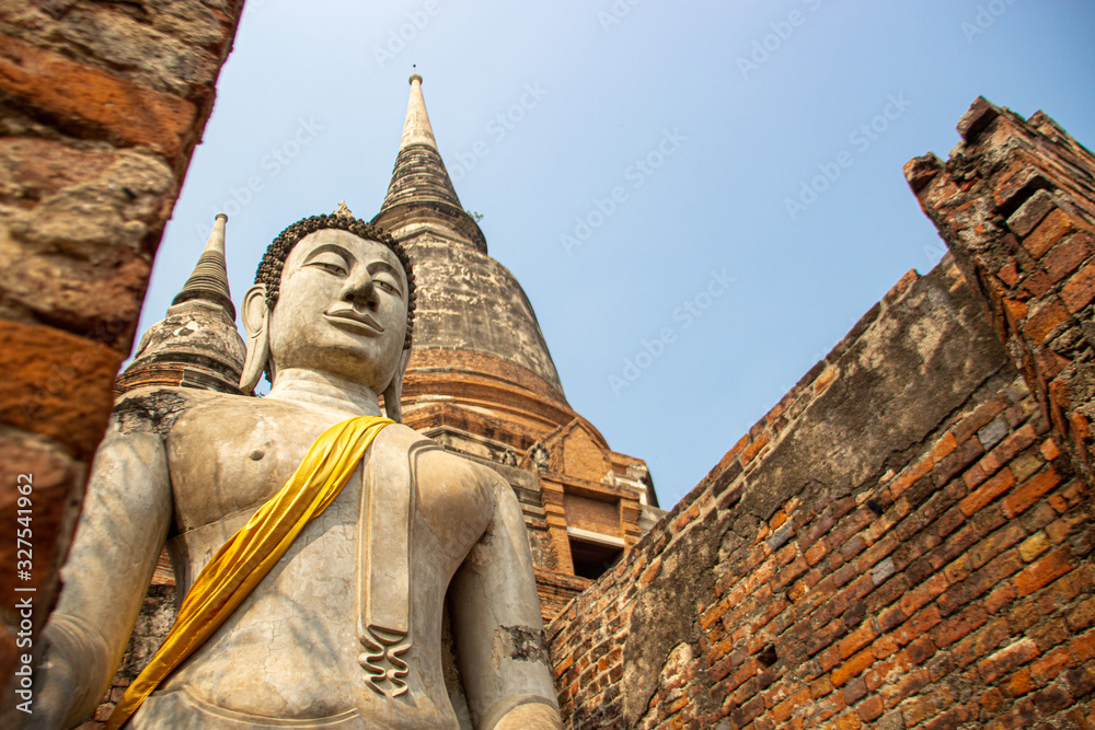 god of buddism figure at heritage temple architecture of Ayuthaya,Thailand.