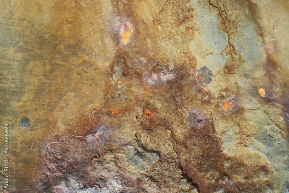 Martian rocky surface of the red planet, with different shades of color and rust marks in the background