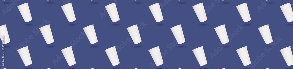 Seamless paper cup pattern on a blue background