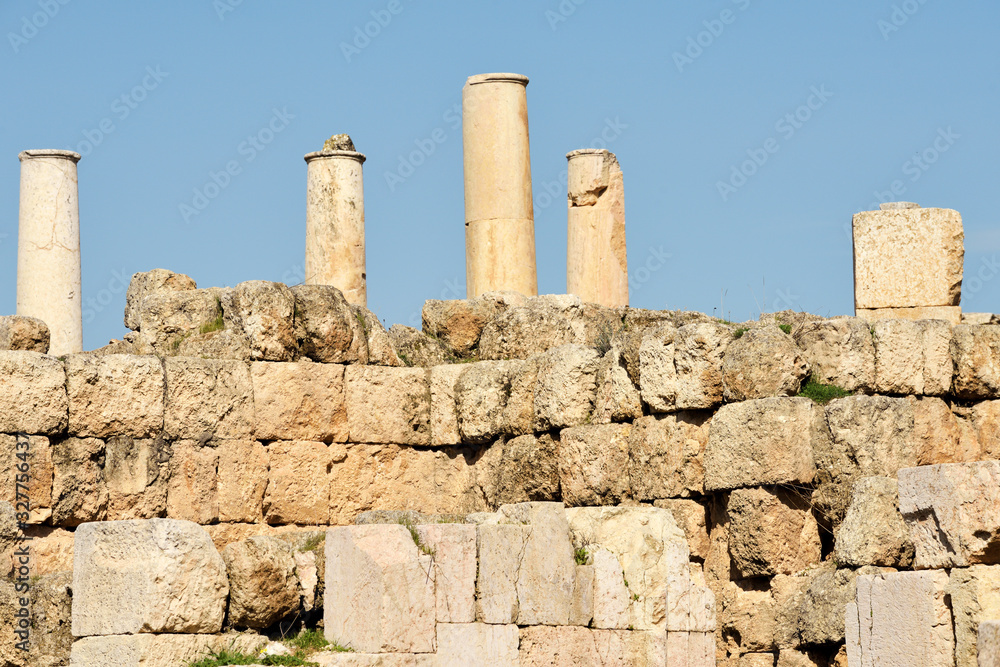 Columns and wall of ruined Greco-Roman city of Gerasa