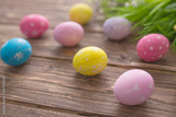 Easter eggs on a old wooden surface