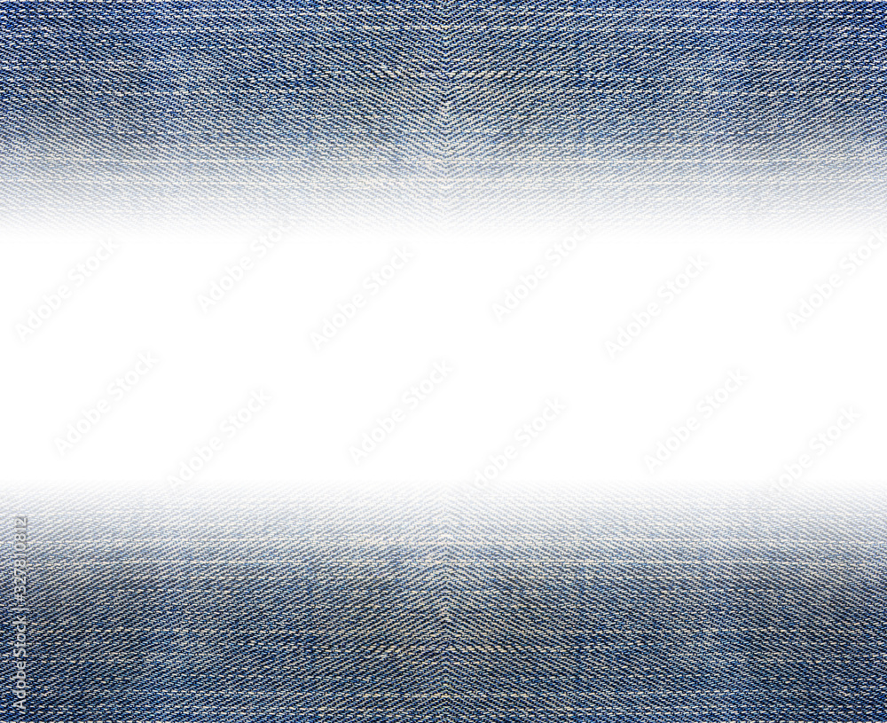 Denim blue jeans empty white frame background. Jean fabric border with blank white copy space, empty banner with space in the middle, plain advertising brochure design