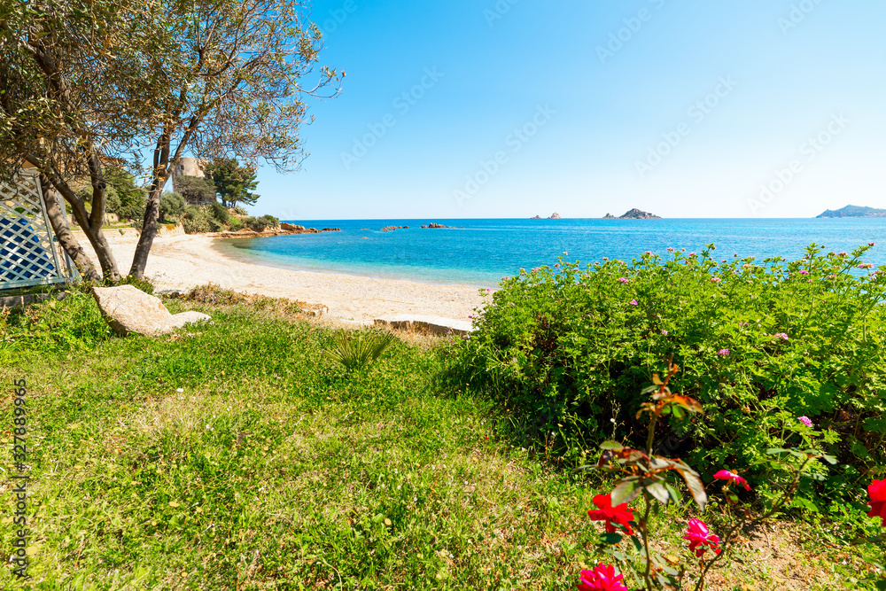 Green grass and flowers by the sea in Santa Maria Navarrese beach