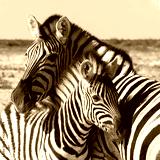 Beautiful stripped zebra and calf in african bush. Etosha game reserve, Namibia, Africa safari wildlife. Wild animal in the nature habitat. This is Africa.