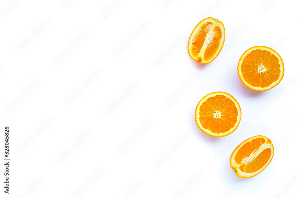 High vitamin C, Juicy and sweet. Fresh orange fruit on white.