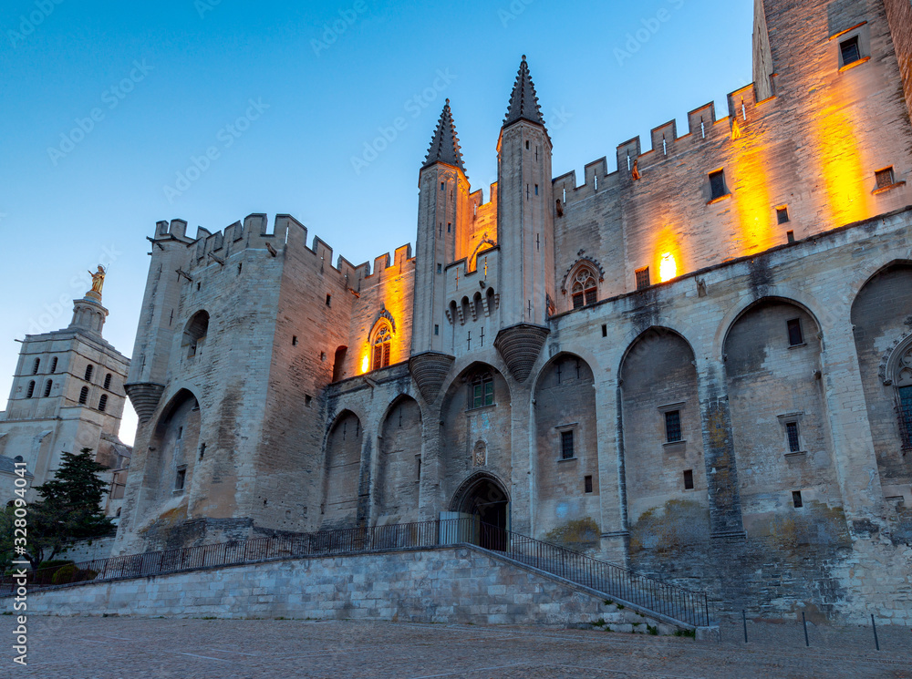 Avignon. Provence. The central facade of the papal palace at dawn.