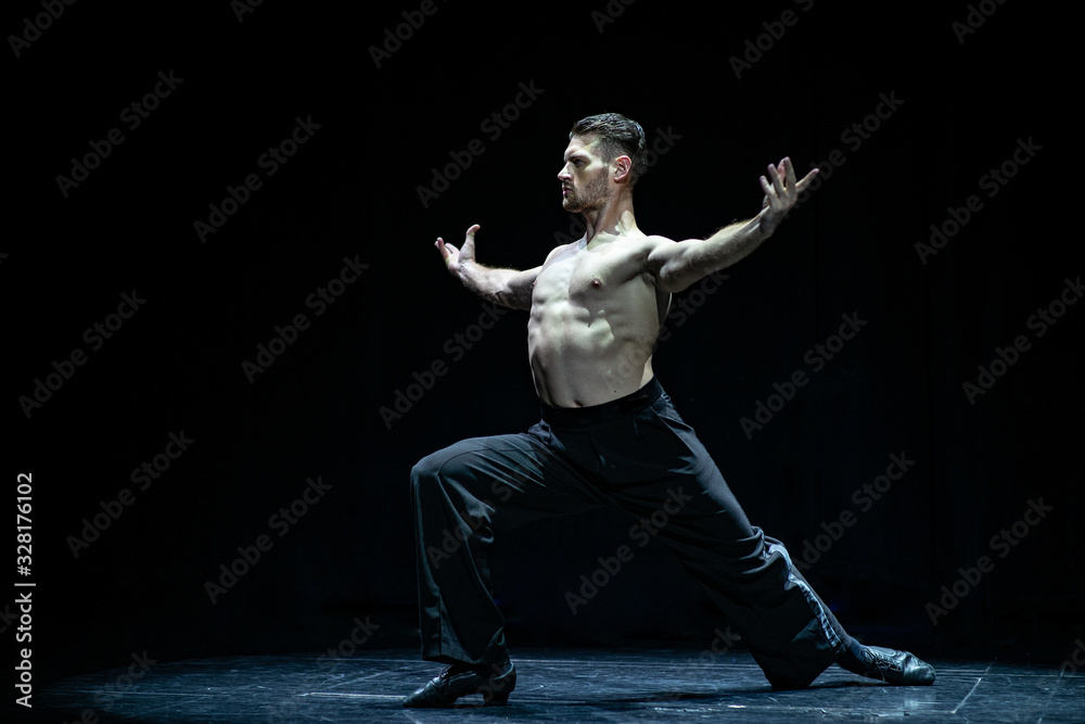 male muscular ballroom dancer making pose isolated on black