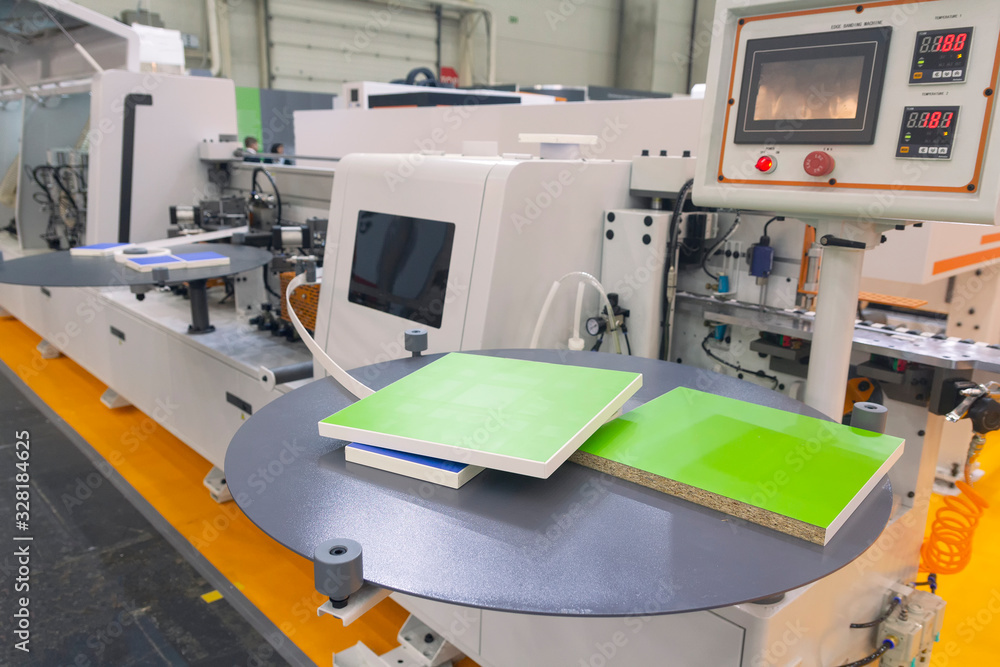 Production line of the furniture factory. Automatic CNC woodworking machine. industry