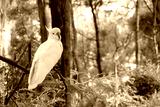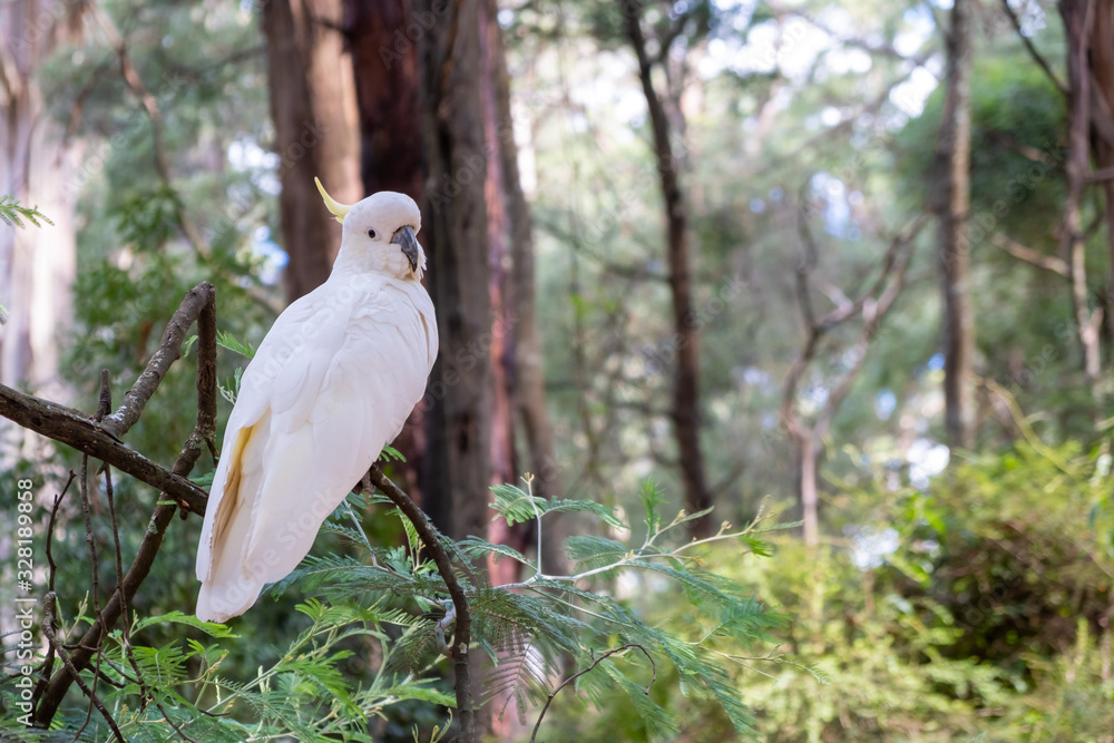 White sulphur crested cockatoo posing for the camera against blurred background