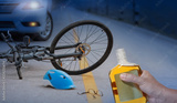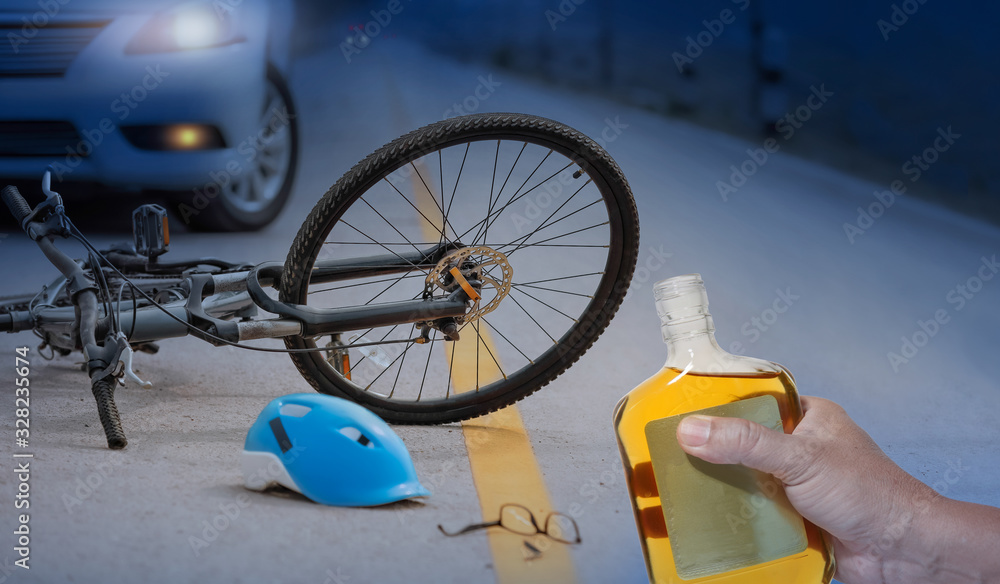 Drunk driving crashes , Accident car crash with bicycle on road at night time.