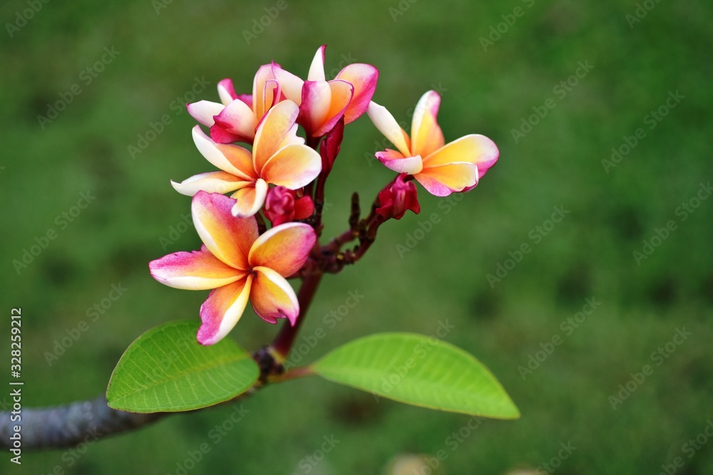 Beautiful flowers in the garden Blooming in the summer.Landscaped Formal Garden,Plumeria flower blooming.
