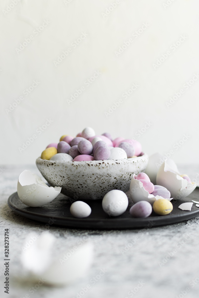 Easter composition with chocolate eggs
