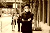 People pay attention to the virus alerts coming from contact. And the respiratory system, business man standing, wearing a mask