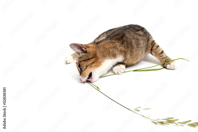 Katze frisst Grashalm