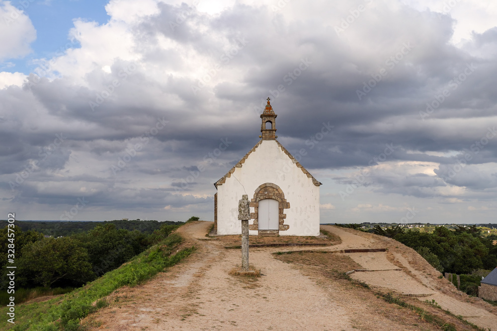 Chapel of Saint-Michel on tumulus Saint-Michel near Carnac in Brittany