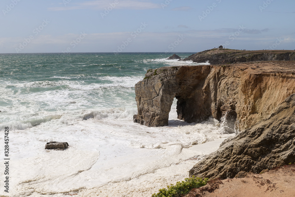 Spectacular cliff Arche De Port Blanc, Quiberon, Britanny, France