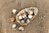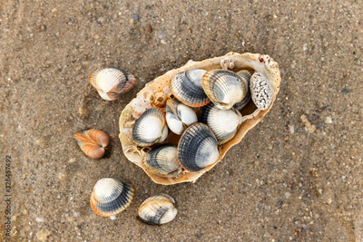 Common cockles on the sand - edible saltwater clams