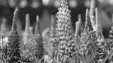 Lupinus, lupin, lupine field with pink, purple and blue flowers. Bunch of lupines summer flower background.