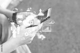 hand with ai data connect to social network for bitcoin money dollar online crypto currency trade business application concept, digital asset risk financial