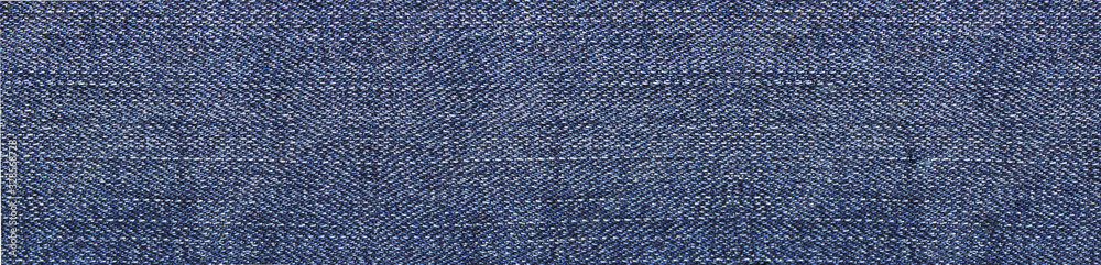 Denim blue jeans texture background of empty fabric, close up top view banner. Blank jean backdrop, empty plain denim cloth canvas design. Lifestyle fashion template of blue color jean material