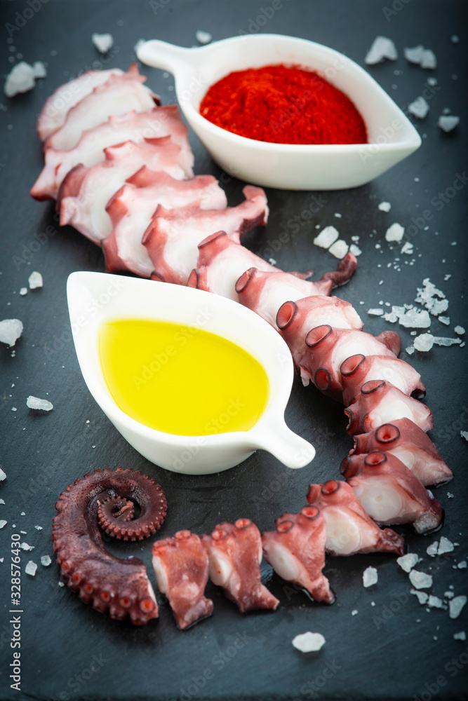 Pulpo cocido con aceite de oliva virgen extra y pimentón de la vera