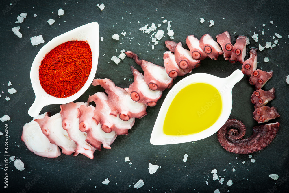 Pulpo cocido con aceite de oliva virgen extra y pimentón de la vera