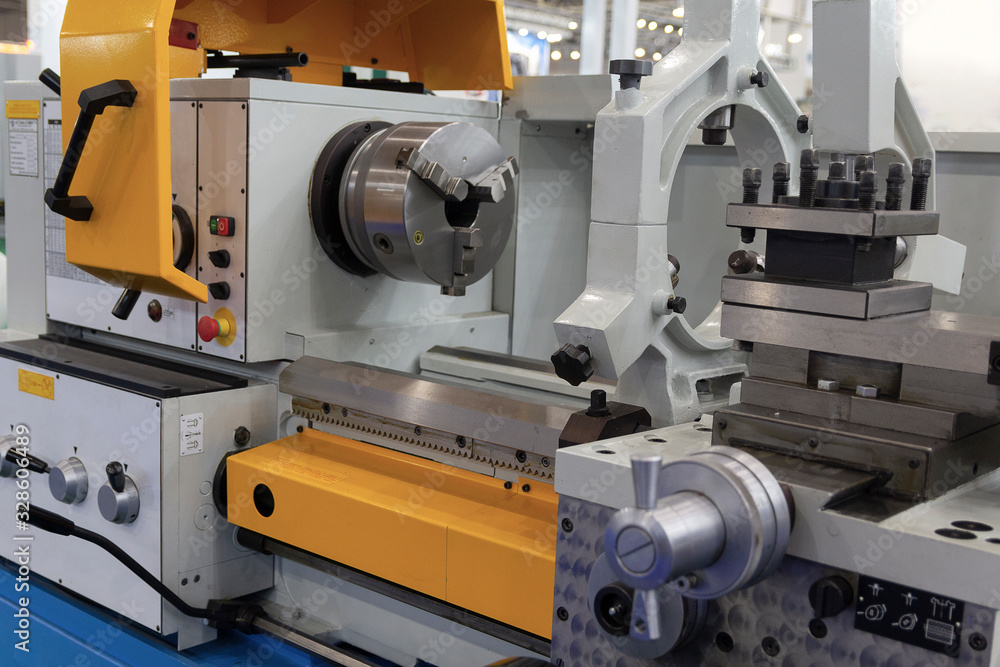 Modern CNC machine tool near. Industry, metal processing