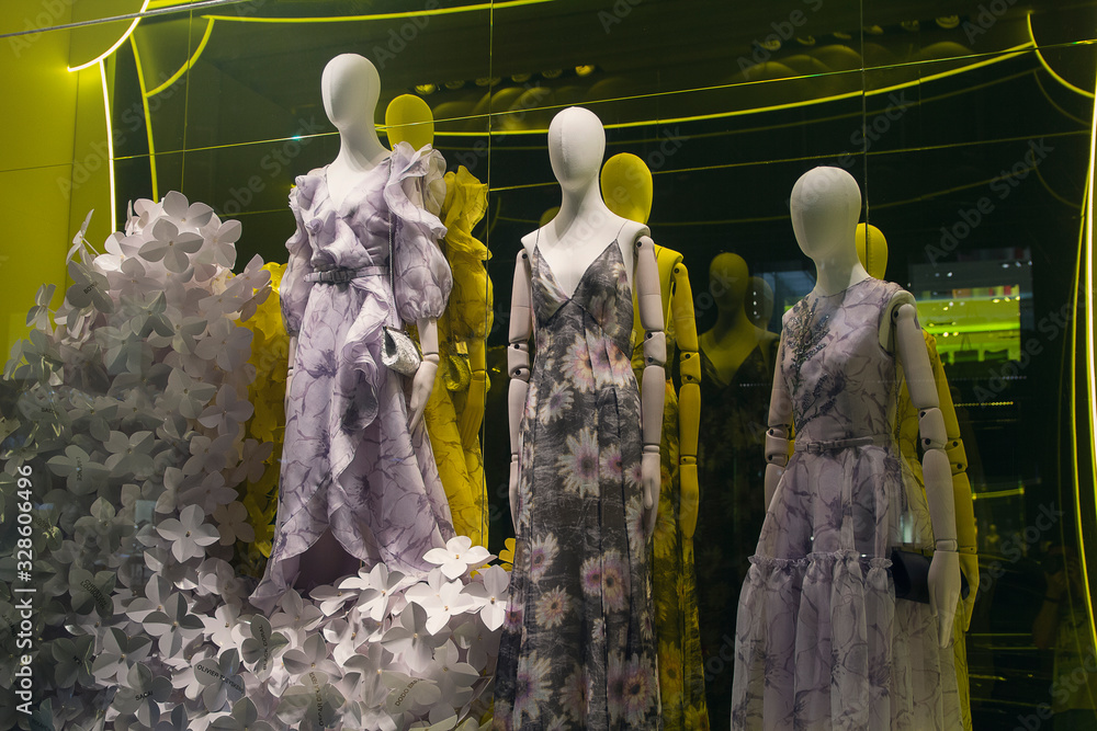Female mannequins demonstrate a stylish summer autumn spring collection of clothes