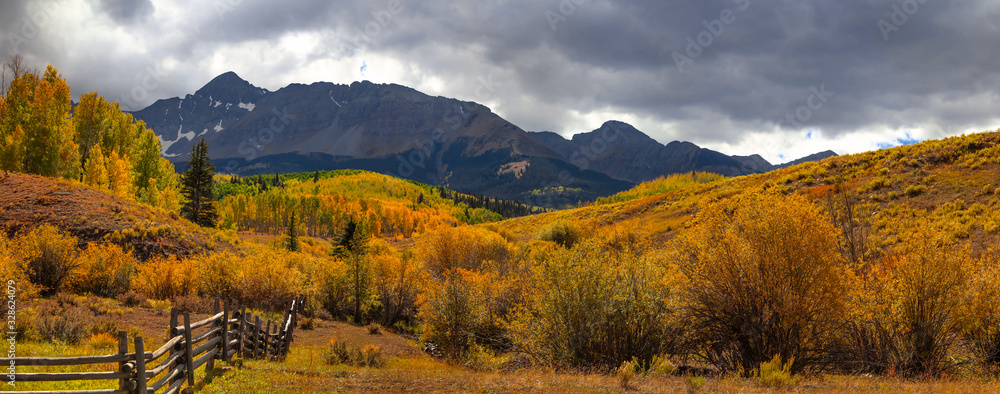 Panoramic view of Autumn landscape in San Juan mountains, Colorado