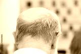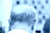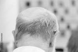 Head of an old man with a deaf aid.