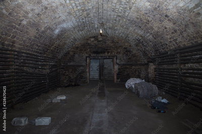 Abandoned old wine cellar is made from a limestone.