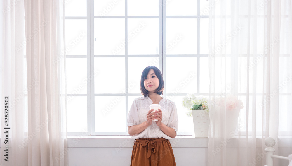 Portrait of beautiful asian young woman sleep lying in bed with head on pillow comfortable and happy with leisure, girl with relax for health and lifestyle concept.