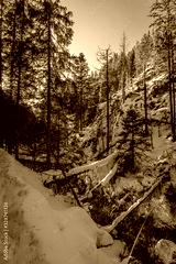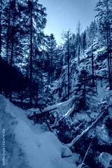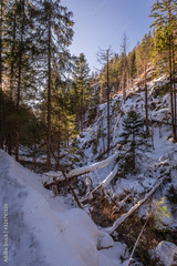 Wonderful snowy forest and river in Koscieliska valley in winter