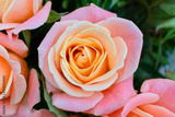 Beautiful fresh rose. Blooming pink bud. Spring flowering roses.