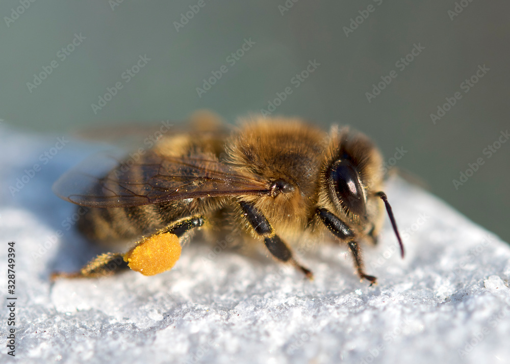 Biene Wildbiene wild bee Pollen Felsen Natur Honig Bestäubung Pause rest Garten Park Flügel Haare hair wings