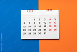 close up of calendar on the blue and orange table background, planning for business meeting or travel planning concept
