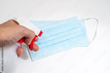 Protective face mask and sanitizer gel dispenser on white background, against Novel coronavirus (2019-nCoV) or Wuhan coronavirus and Influenza. Antiseptic, Hygiene and Healthcare concept