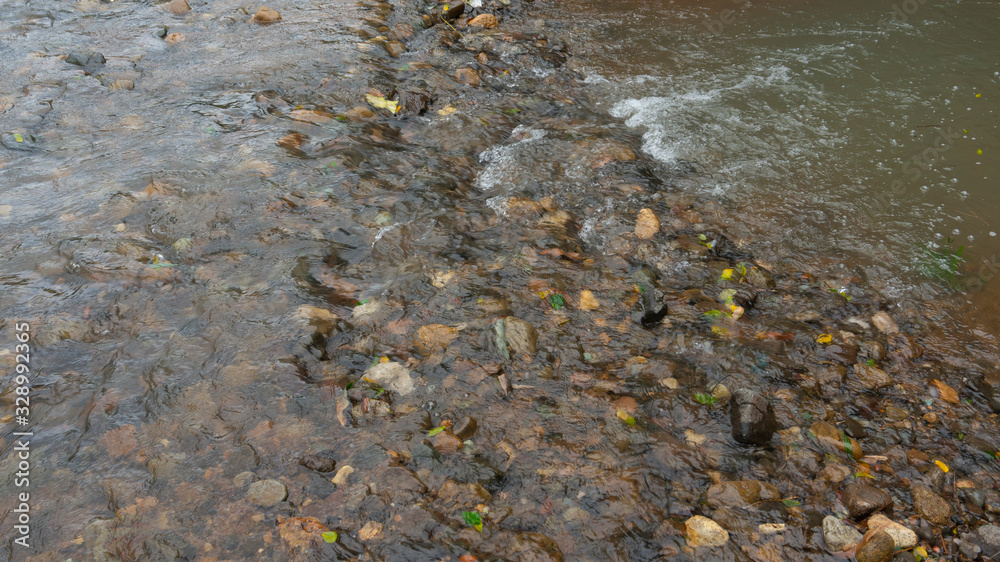 River water flow in the rainy season, looks clear and fresh depicts a rural atmosphere