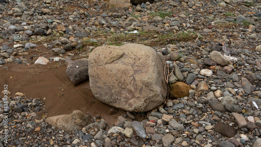 Rocks in the river after the flood. Images suitable for use as wallpaper or graphic material