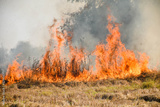 Fire burns stubble on the field. Fire in summer.