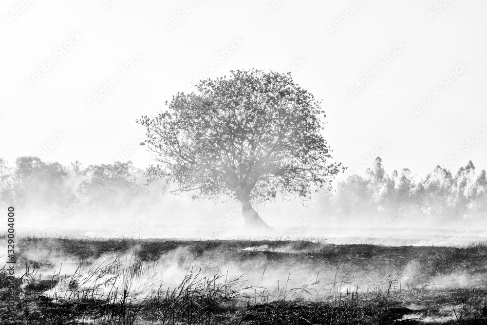 Fire burns stubble on the field. Fire in summer.