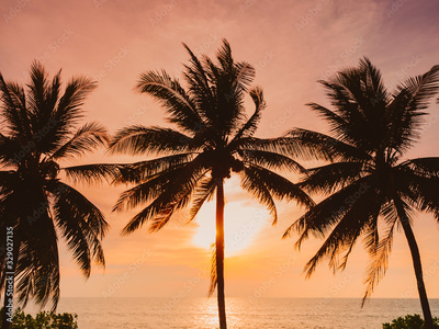 Coconut Tree Sunset Beach Vacation Outdoor Summer holiday Background